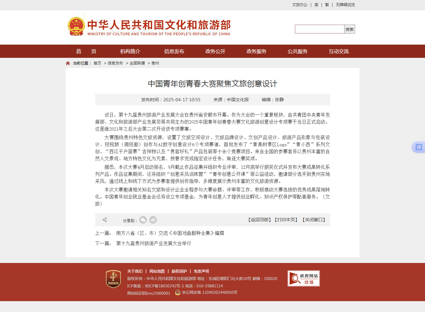 举办大赛启动仪式(贵州旅游产业发展大会期间,地点:贵州省安顺市)