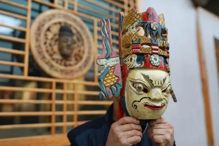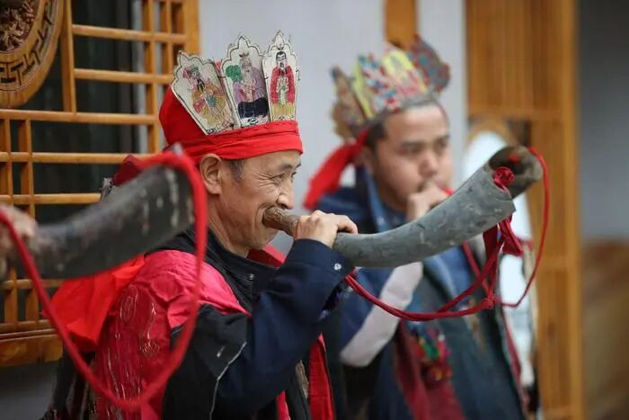 此外,还有两具专供祭祀用的傩神爷爷伏羲和傩神娘娘女娲的木雕头像。其面具主体浮雕,工艺精湛,色彩古朴,人物形象怪异,与真人脸面大小相等,采用乌桕、水杨柳树木雕制而成,轻便耐用无裂缝,戴到脸上表演时眼可见光、鼻可通气、嘴可传声,人物形象表现得惟妙惟肖。